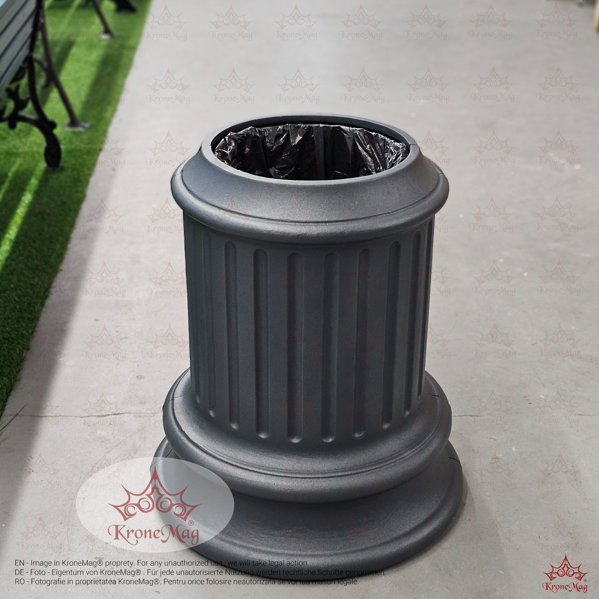Se prinde la sol cu ​​suruburi de beton (pretul coșului de gunoi nu include șuruburile de fixare).